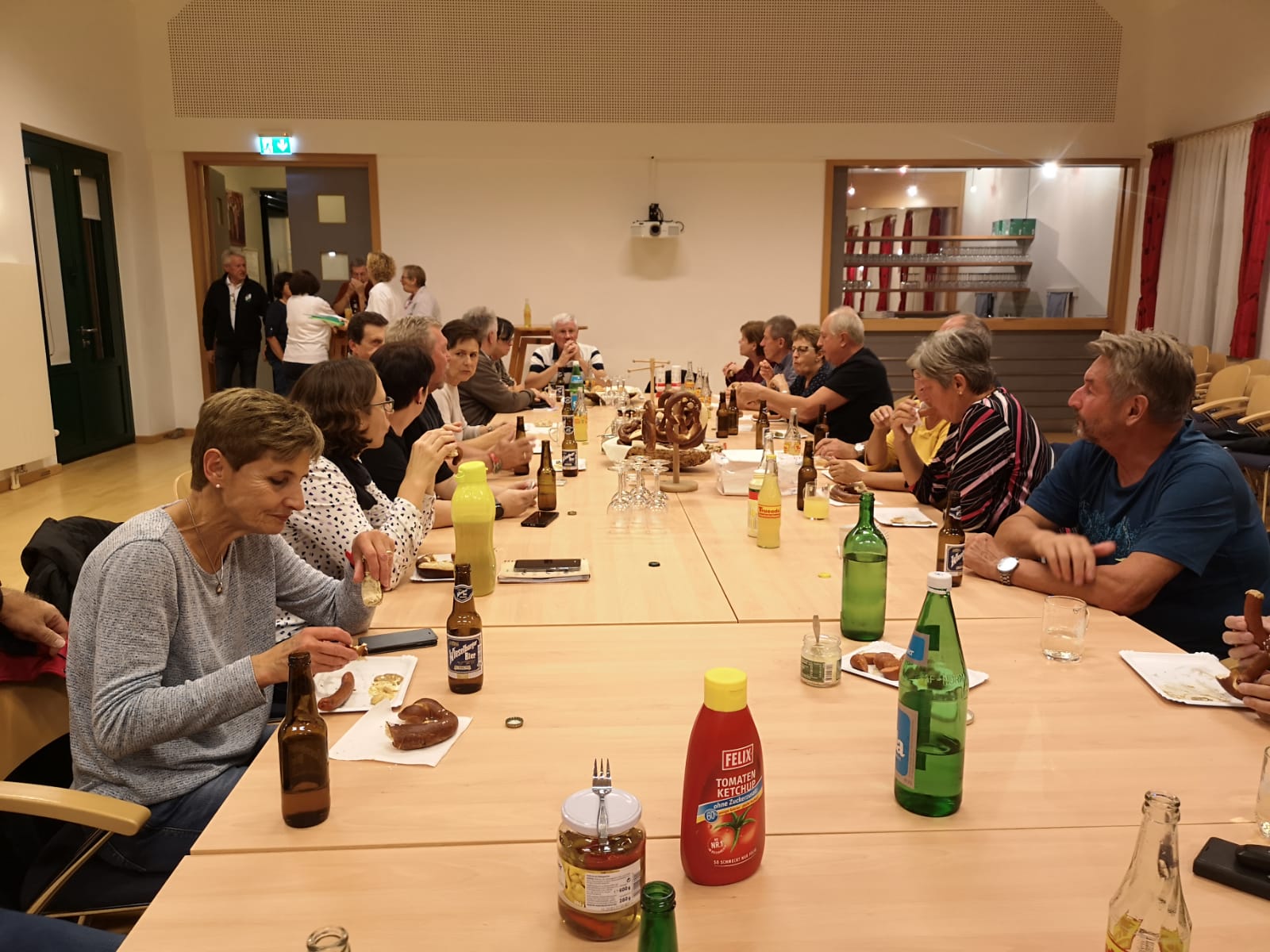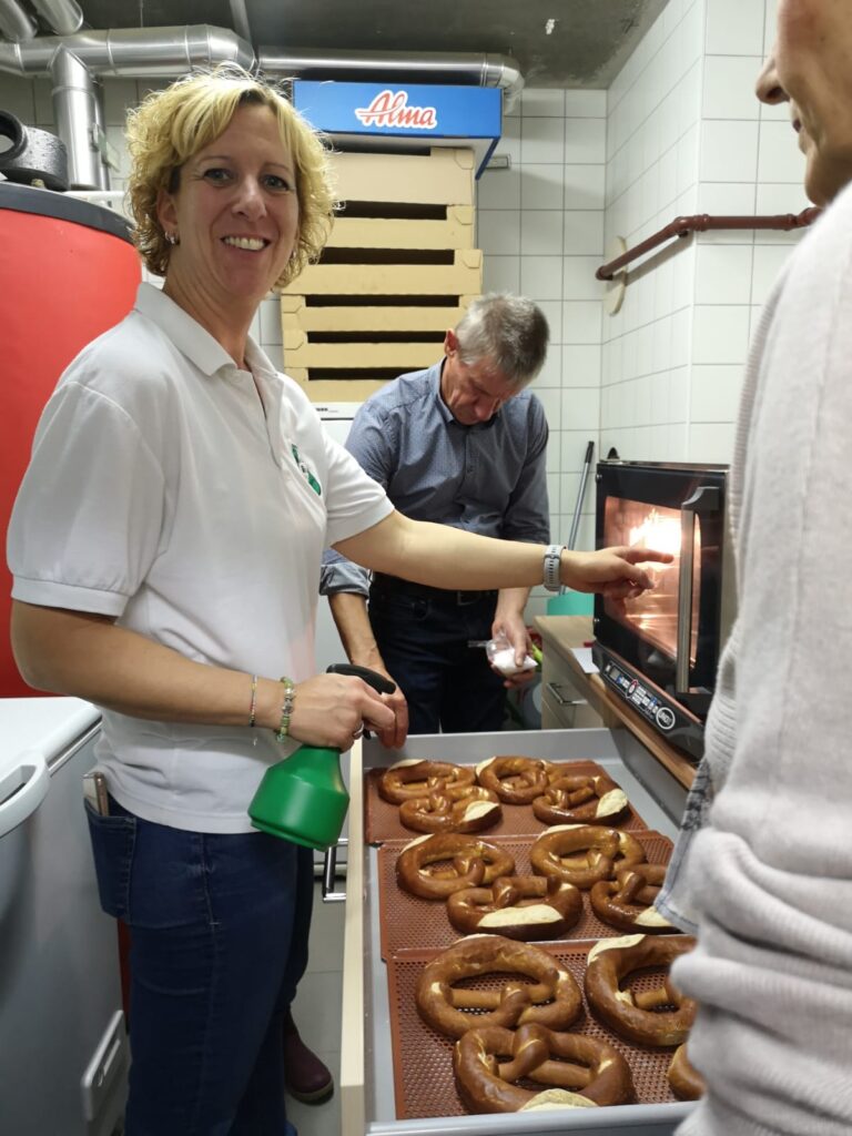 Vor Beginn der Besprechung fand die erste Einführung beim Semmel und Laugenbrezerl aufbacken statt. Danach wurden die hervorragenden Back-Resultate mit Würstl und Debreziner verzehrt.