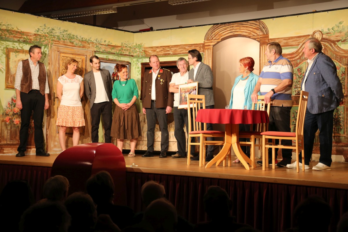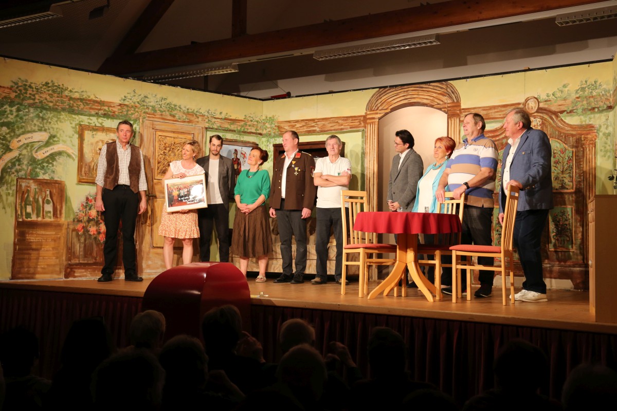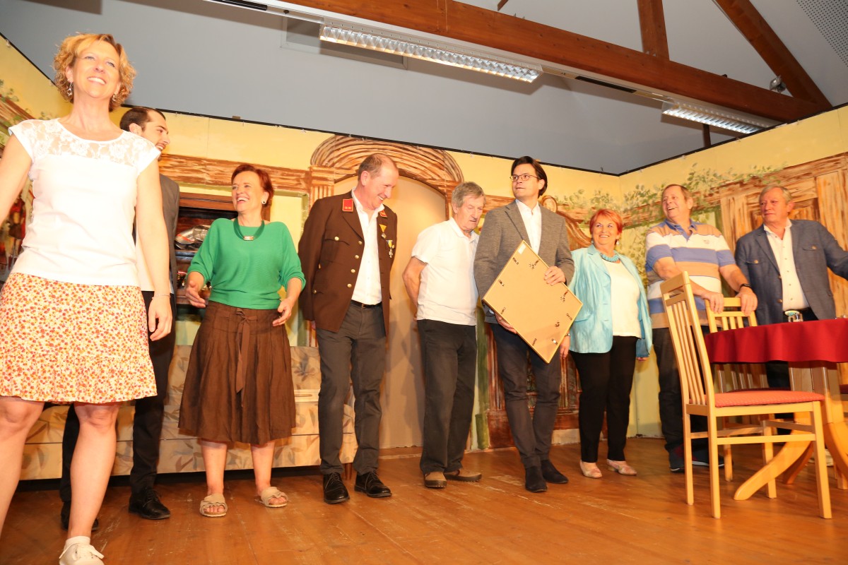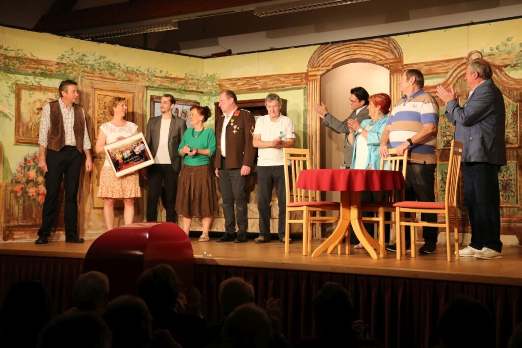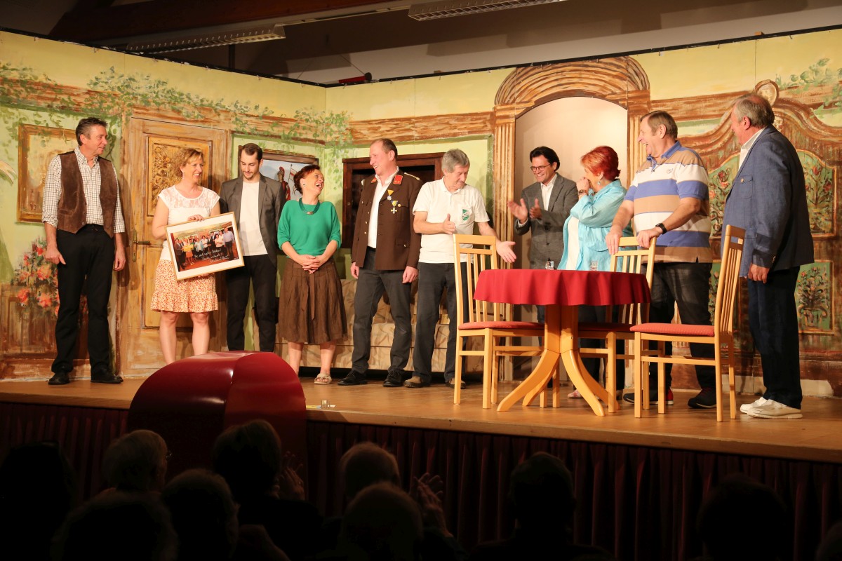 Nach der letzten Vorstellung überraschte uns unser geschätzter Bürgermeister Bernhard Heinl und überreichte ein Bild mit persönlicher Widmung als Erinnerung. Danach wurde noch lange gefeiert – schön wars!