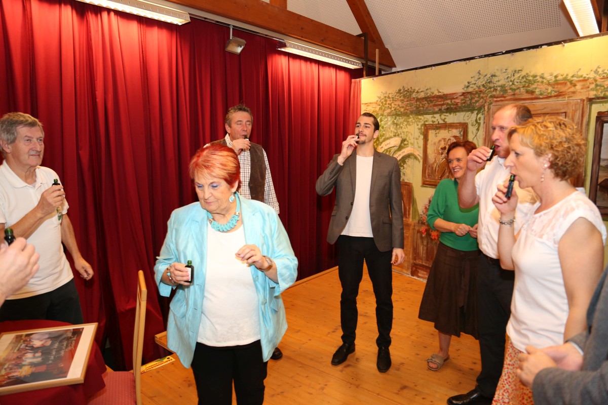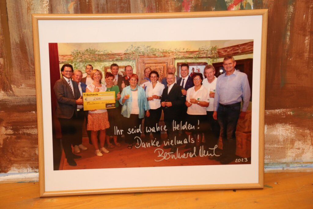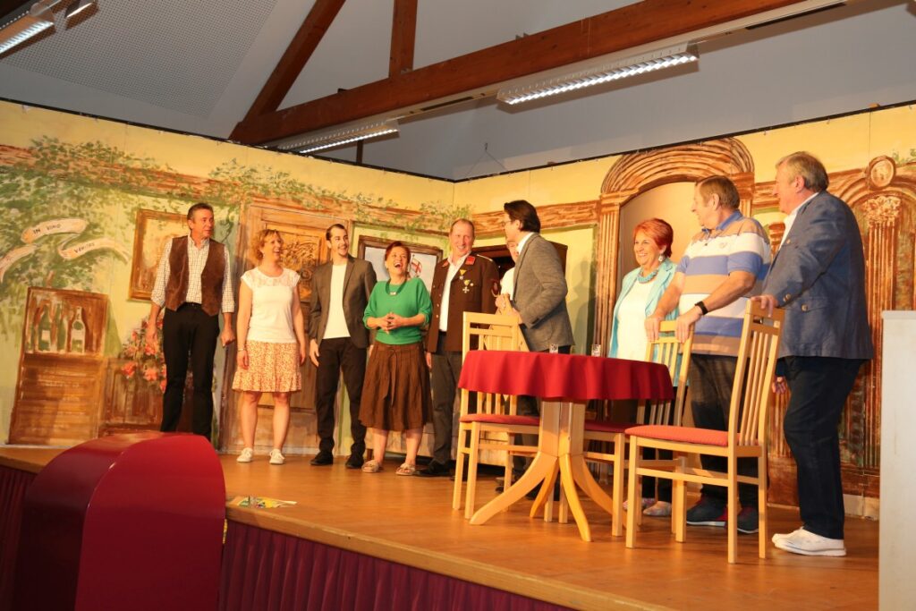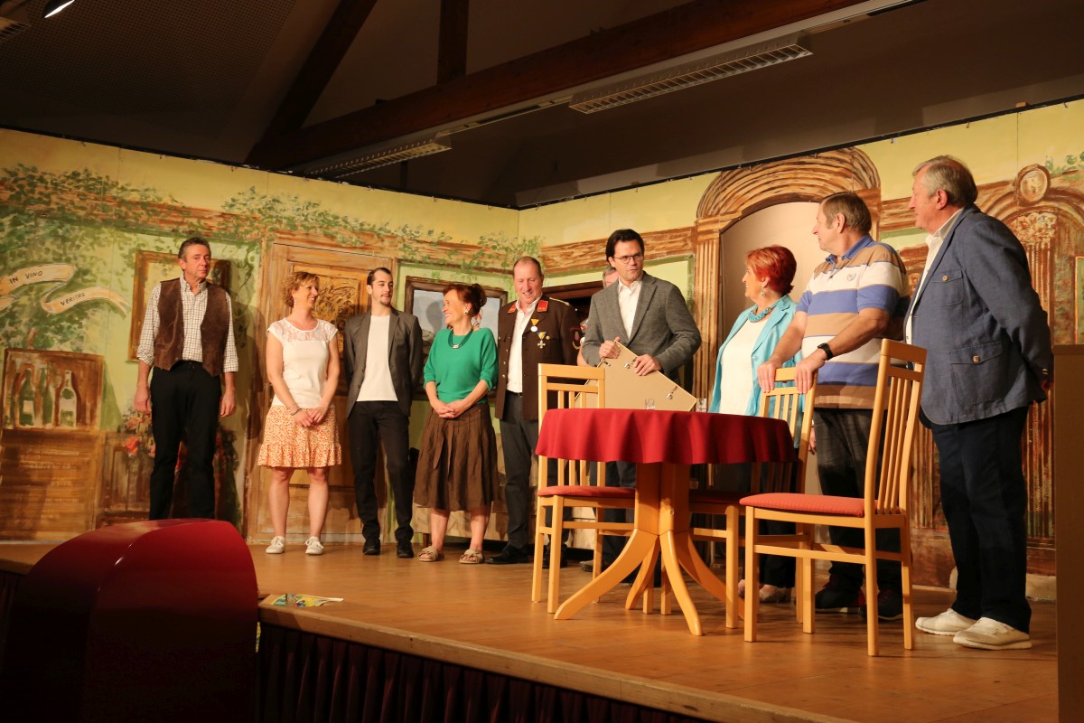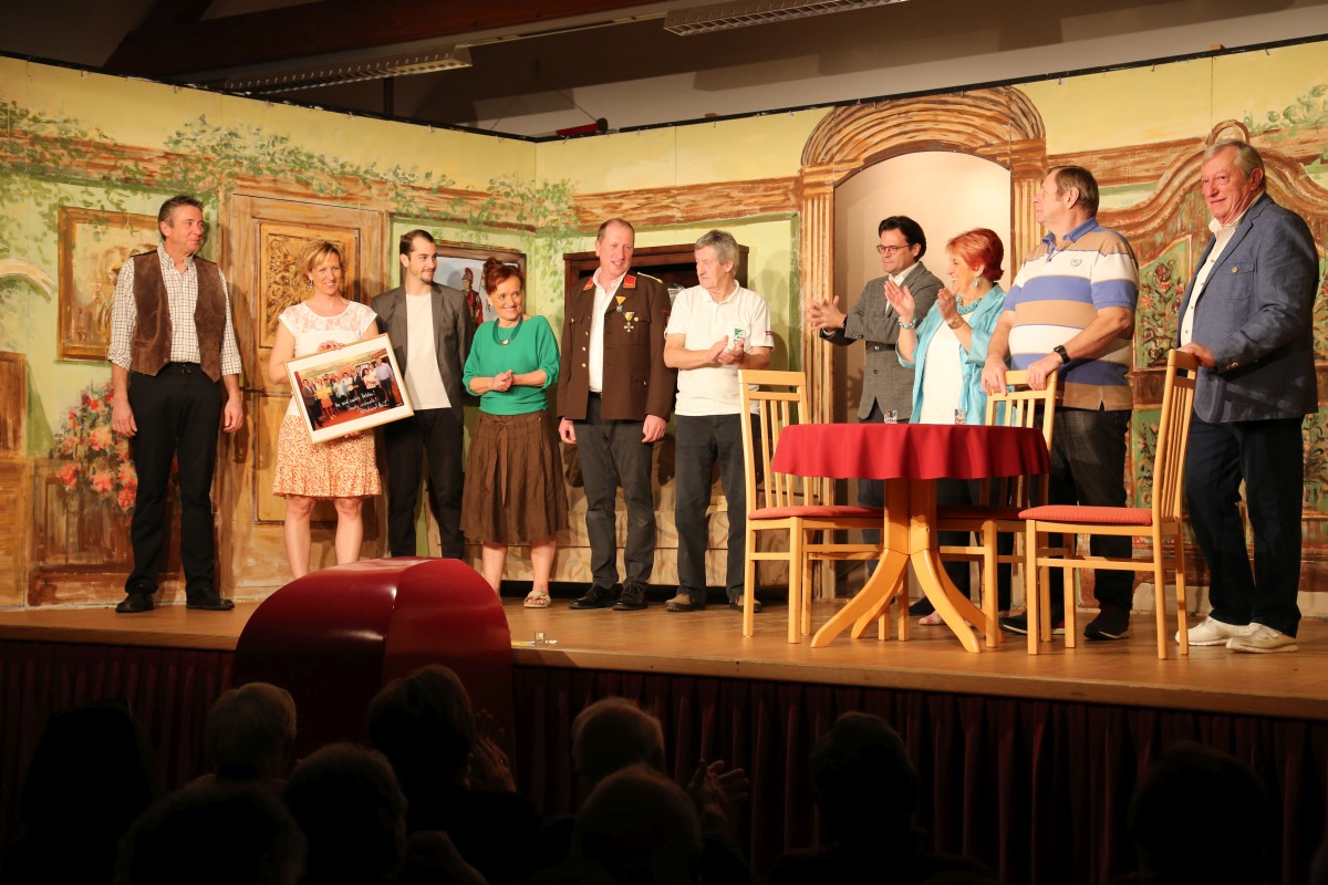 Nach der letzten Vorstellung überraschte uns unser geschätzter Bürgermeister Bernhard Heinl und überreichte ein Bild mit persönlicher Widmung als Erinnerung. Danach wurde noch lange gefeiert – schön wars!