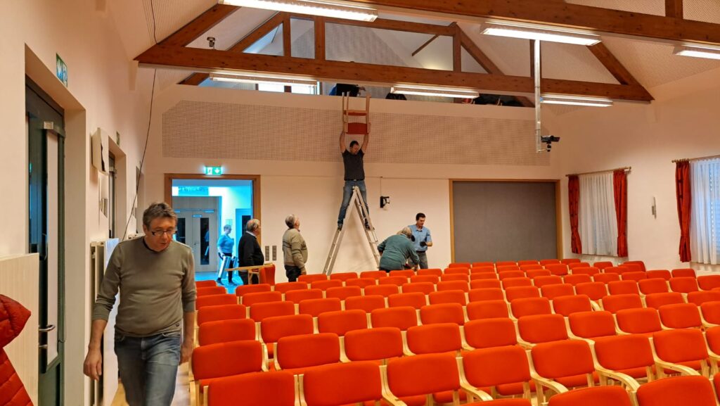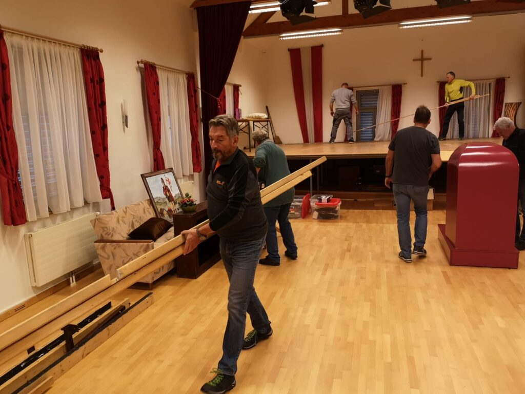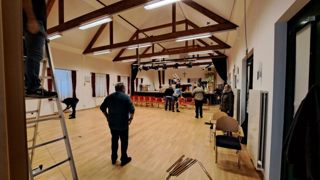 Am 09.12. trafen sich viele, viele Helfer zum Wegräumen. Viel Arbeit stand an – Sessel wegräumen, Bühne und Theatercafe abbauen, Reinigung – um das Gemeindeamt wieder im ordentlichen Zustand übergeben zu können.
