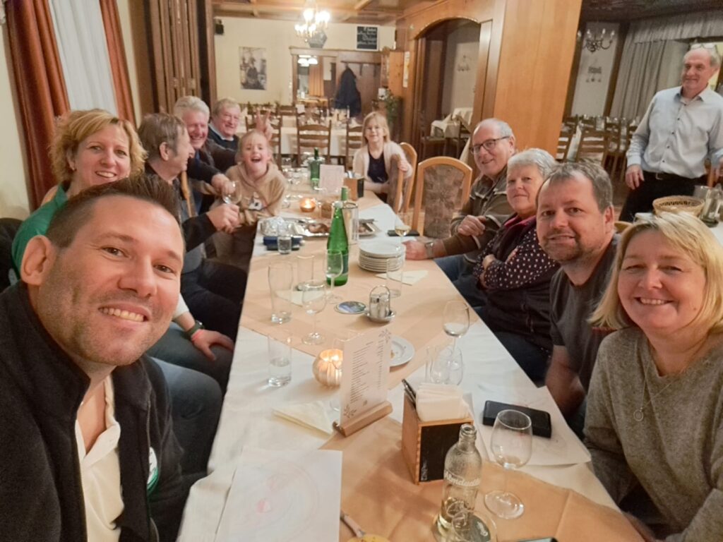 Nach getaner Arbeit ging es zum traditionellen Stelzenessen ins Gasthaus Burchhart, wo eine gelungene Theatersaison ihren Abschluss fand.
