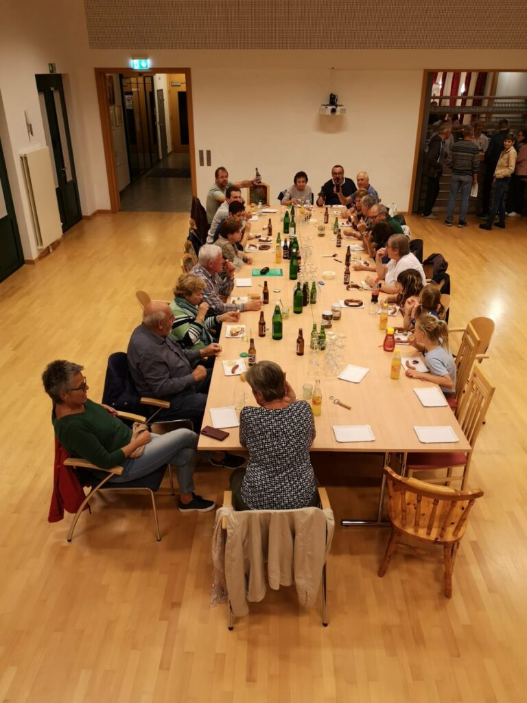 Am 11.10. kamen die Helfer und Helferinnen im Gemeindesaal zusammen, um die diesjährige Organisation des Theatercafe zu besprechen. Nach einer guten Jause mit Würstln der Fleischerei Höchtl und frisch aufgebackenen Semmeln und Laugenbrezerln gab es von der Obfrau Eva Riedmayer wieder eine kurze Einführung bezüglich Planung des Cafes und Verhalten im Notfall während der Vorstellungen. Danach wurde fleißig in die Liste der Helferdienste und Mehlspeis-Spenden eingetragen.