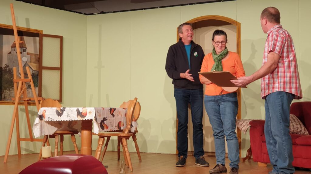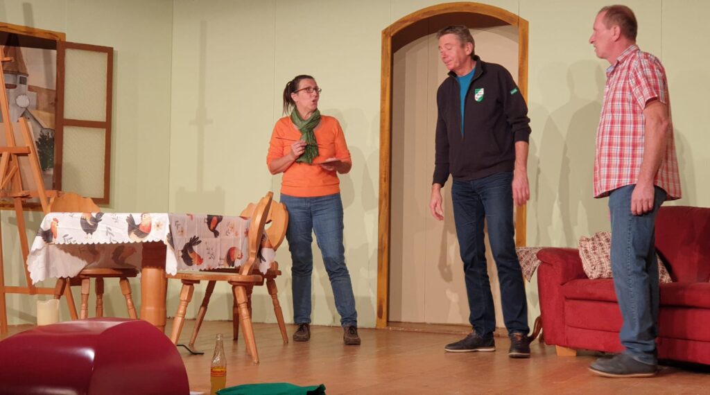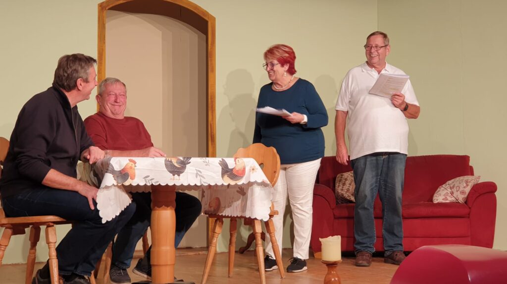 Unsere Proben für das diesjährige Stück „der Kampfgockel vom Moserhof“ laufen auf Hochtouren!