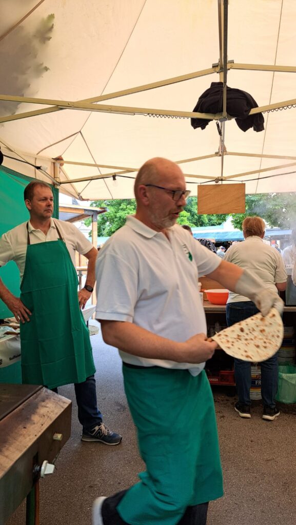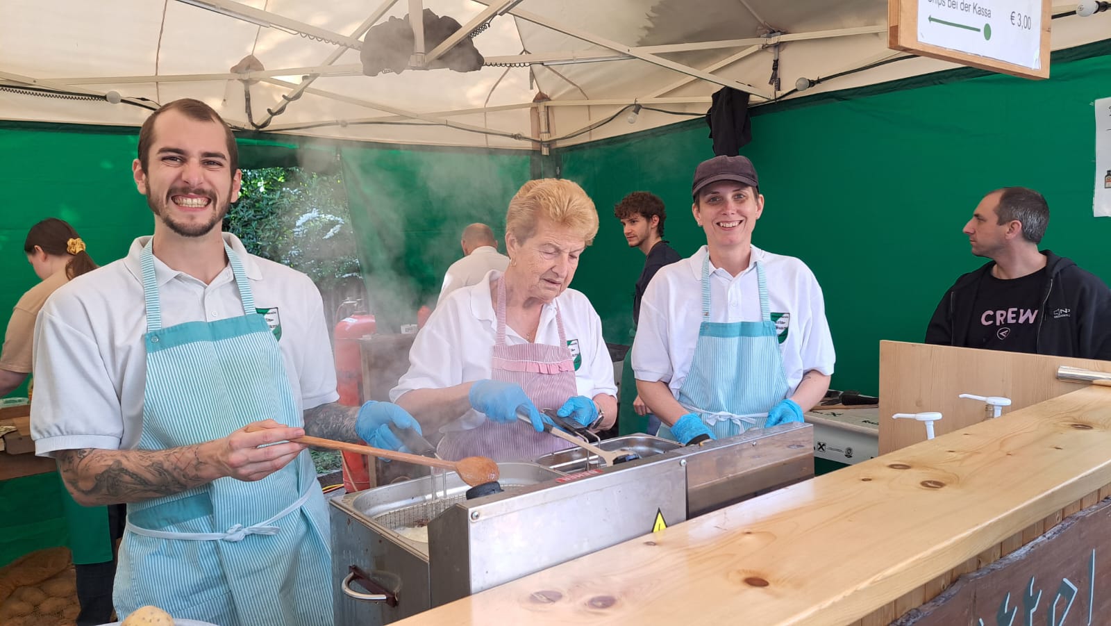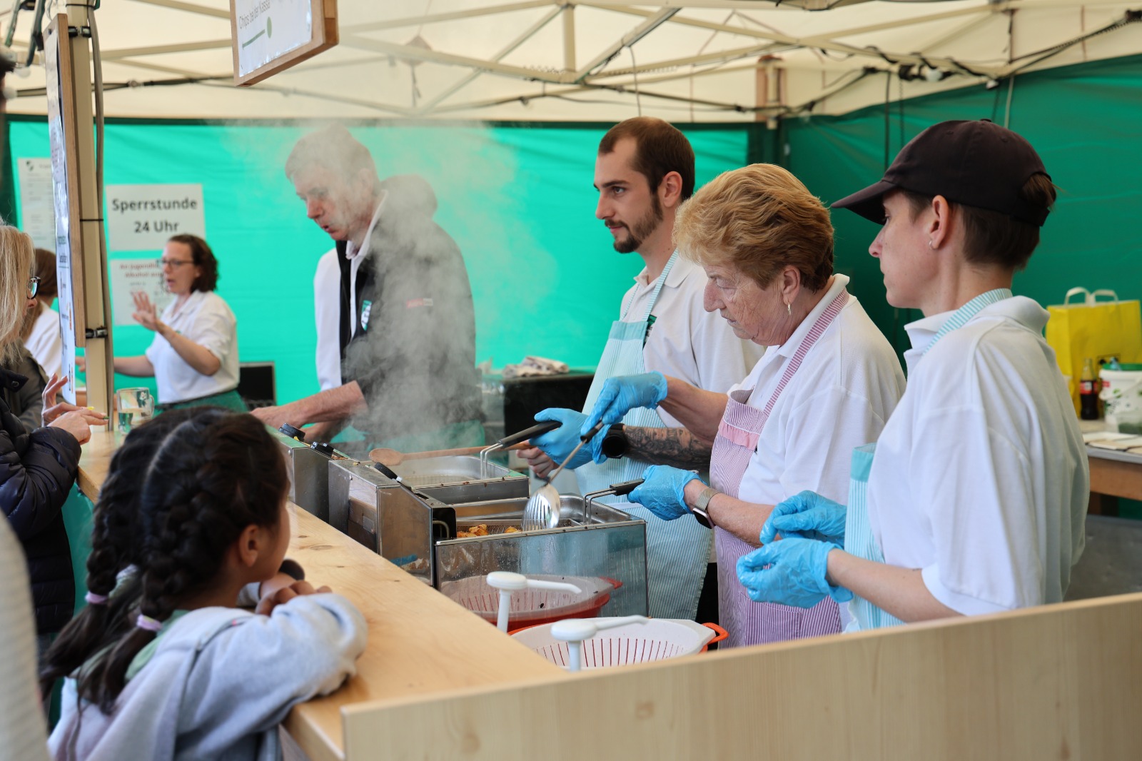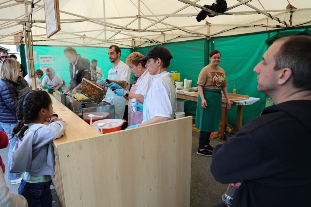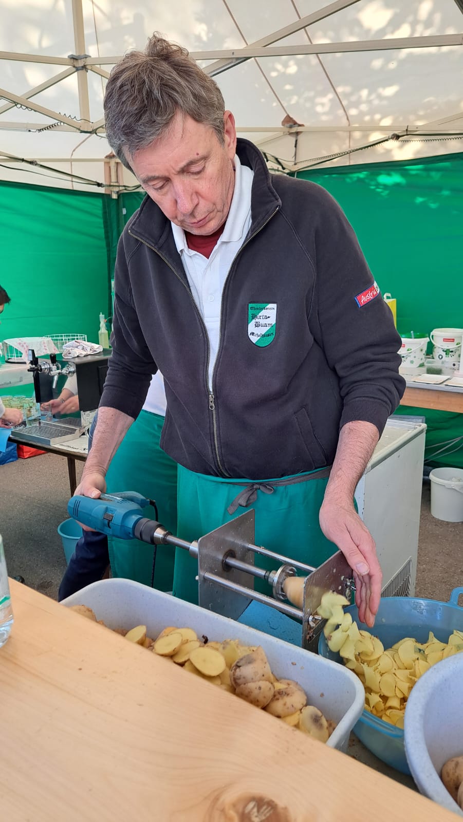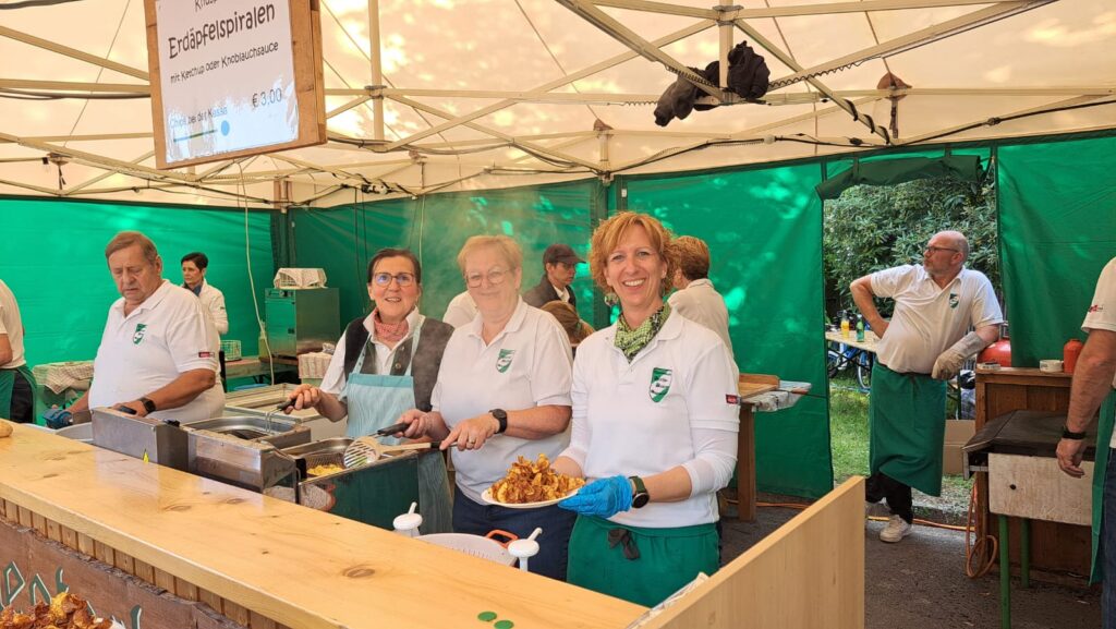 Das Team der Theaterhütte hatte alle Hände voll zu tun, innerhalb von nicht mal 4 Stunden waren die 300 Feuerflecken ausverkauft und um ca 19.30 Uhr wurde die letzte Spiralis-Portion der ungefähr 120 kg Erdäpfel ausgehändigt.