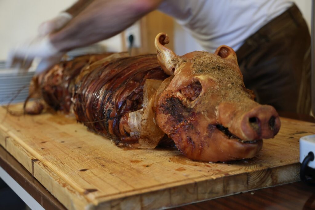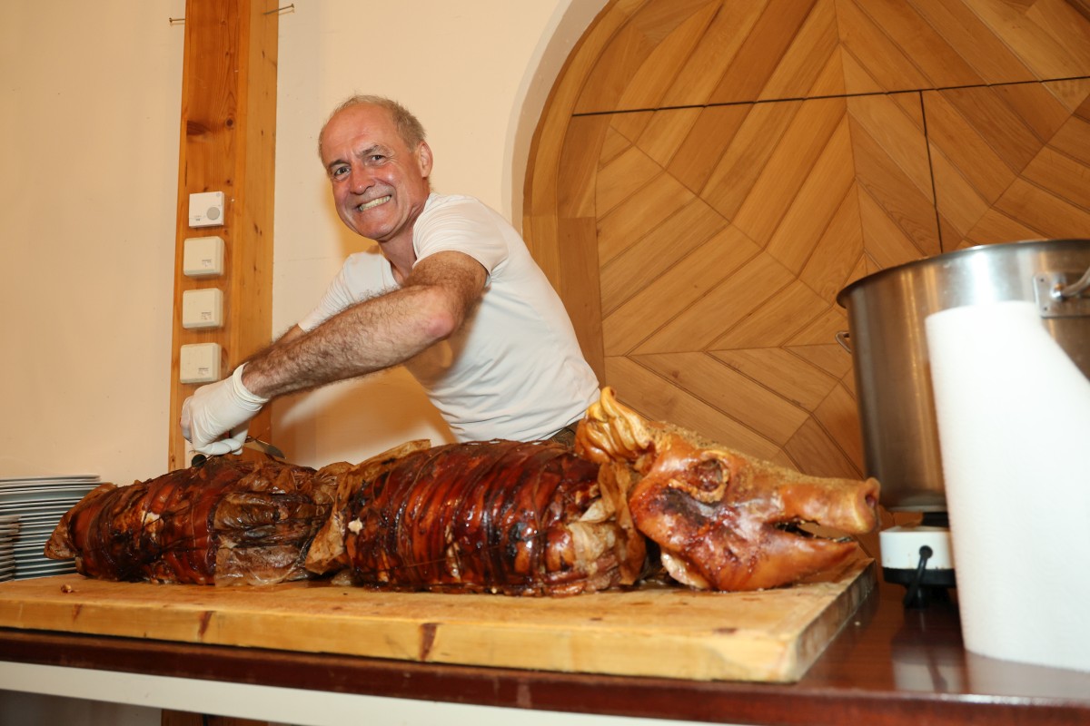 Nach einem ausgezeichneten Spanferkel und köstlichen mitgebrachten Mehlspeisen (auch dafür ein großes Dankeschön!) wurde das neue Theaterstück