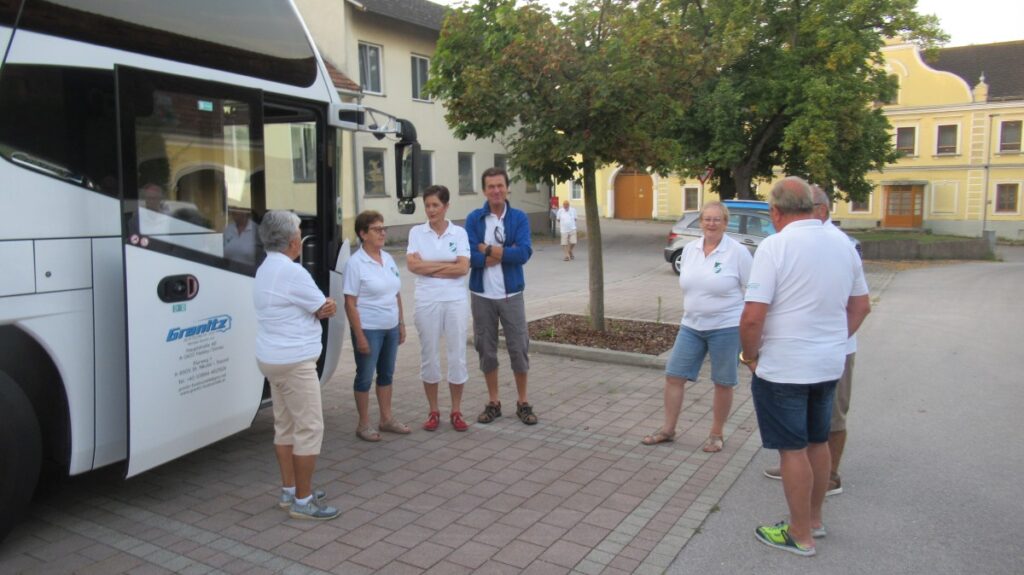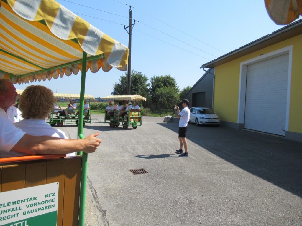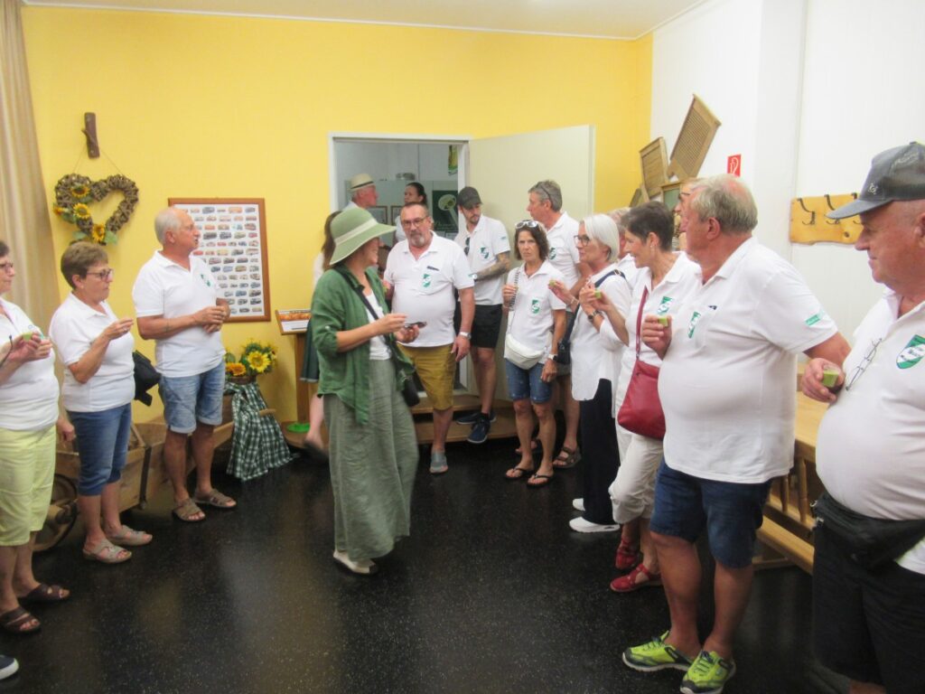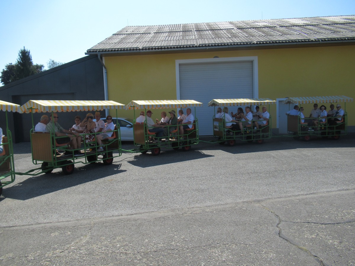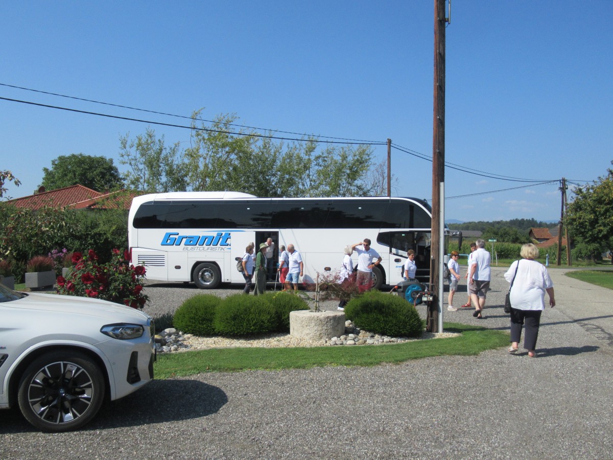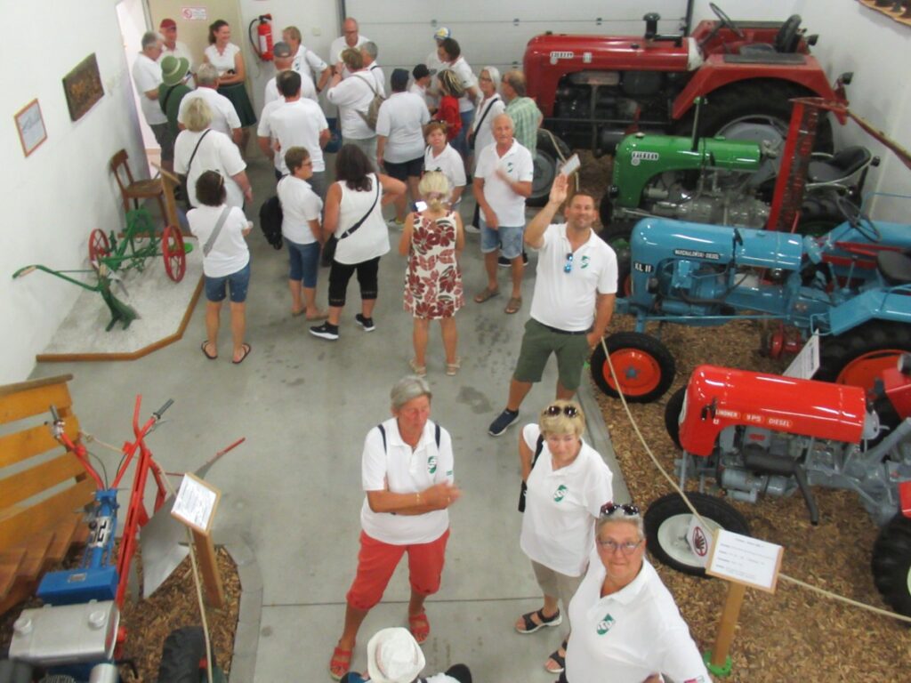 Am Freitag, 15.08., starteten wir pünktlich um 06.30 Uhr vom Hauptplatz Michelhausen. Unser erster Halt führte uns zu einem Asfinag-Parkplatz, wo wir unser Frühstück – Wurstsemmeln und Kipferl – zu uns nahmen. Danach ging es zum ERLEBNISHOF RECZEK in Wundschuh. Liebevoll werden hier unter anderem alte Landwirtschaftsmaschinen, Traktoren und Erntebehelfe ausgestellt. Mit dem Erlebniszug ging es dann zur Ausstellung rund um die Kürbisernte, auch Kürbiskernöl und ein ausgezeichneter Kürbiskernlikör wurde verkostet.
