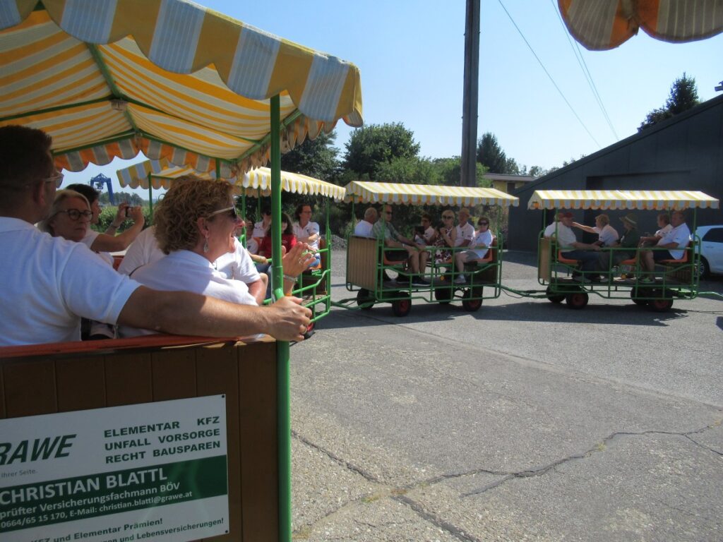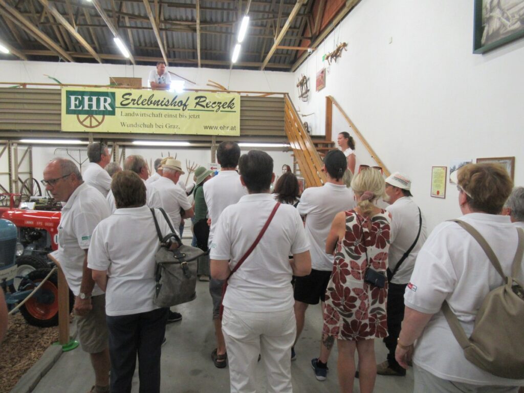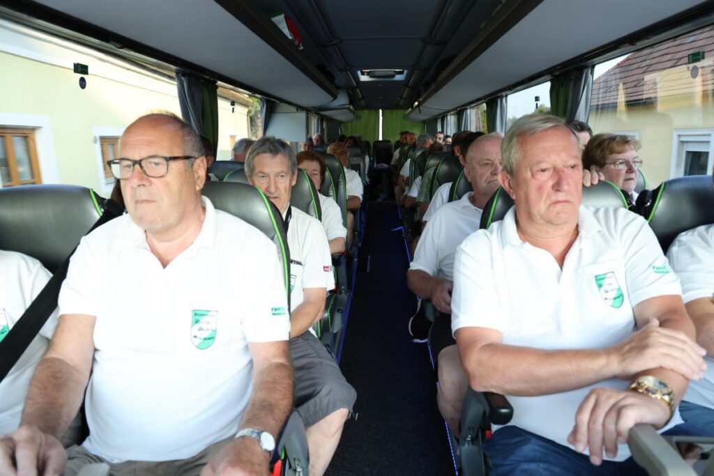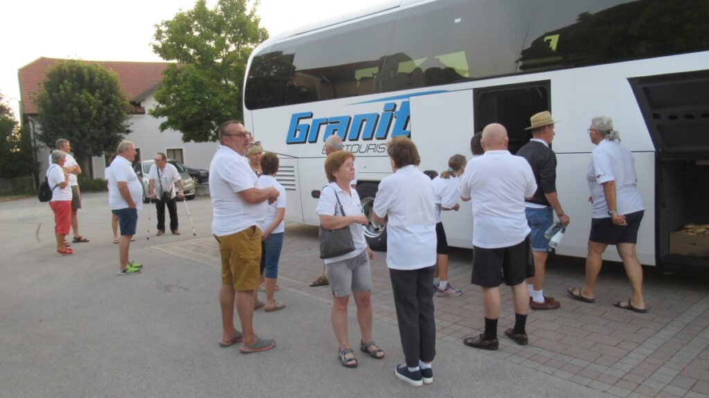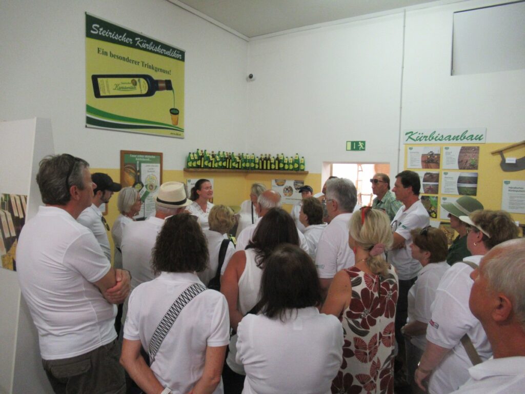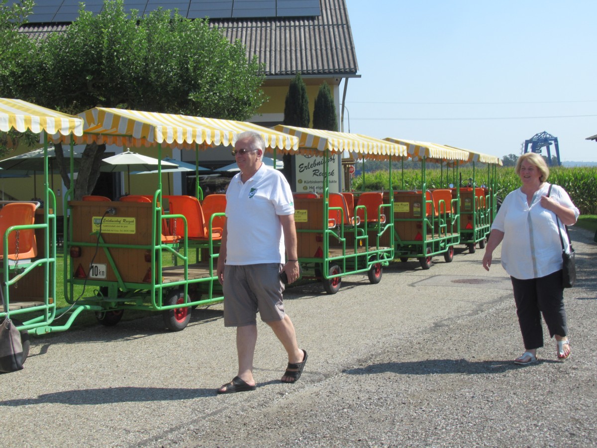 Am Freitag, 15.08., starteten wir pünktlich um 06.30 Uhr vom Hauptplatz Michelhausen. Unser erster Halt führte uns zu einem Asfinag-Parkplatz, wo wir unser Frühstück – Wurstsemmeln und Kipferl – zu uns nahmen. Danach ging es zum ERLEBNISHOF RECZEK in Wundschuh. Liebevoll werden hier unter anderem alte Landwirtschaftsmaschinen, Traktoren und Erntebehelfe ausgestellt. Mit dem Erlebniszug ging es dann zur Ausstellung rund um die Kürbisernte, auch Kürbiskernöl und ein ausgezeichneter Kürbiskernlikör wurde verkostet.