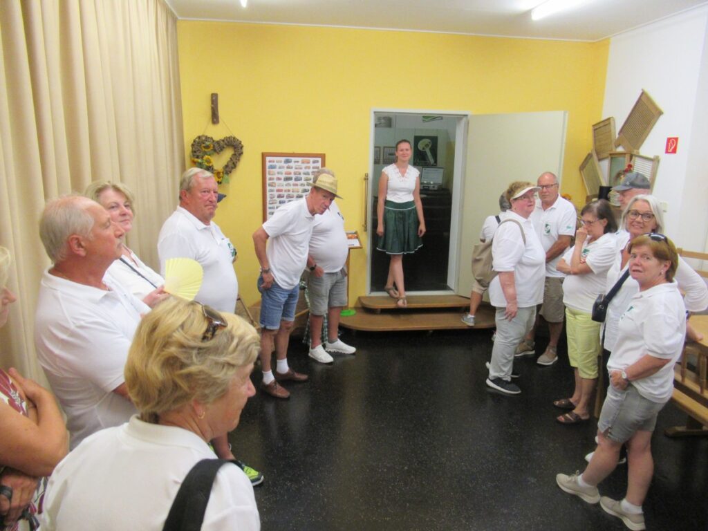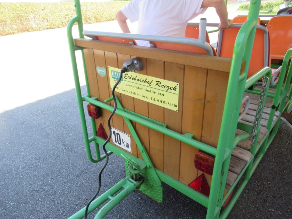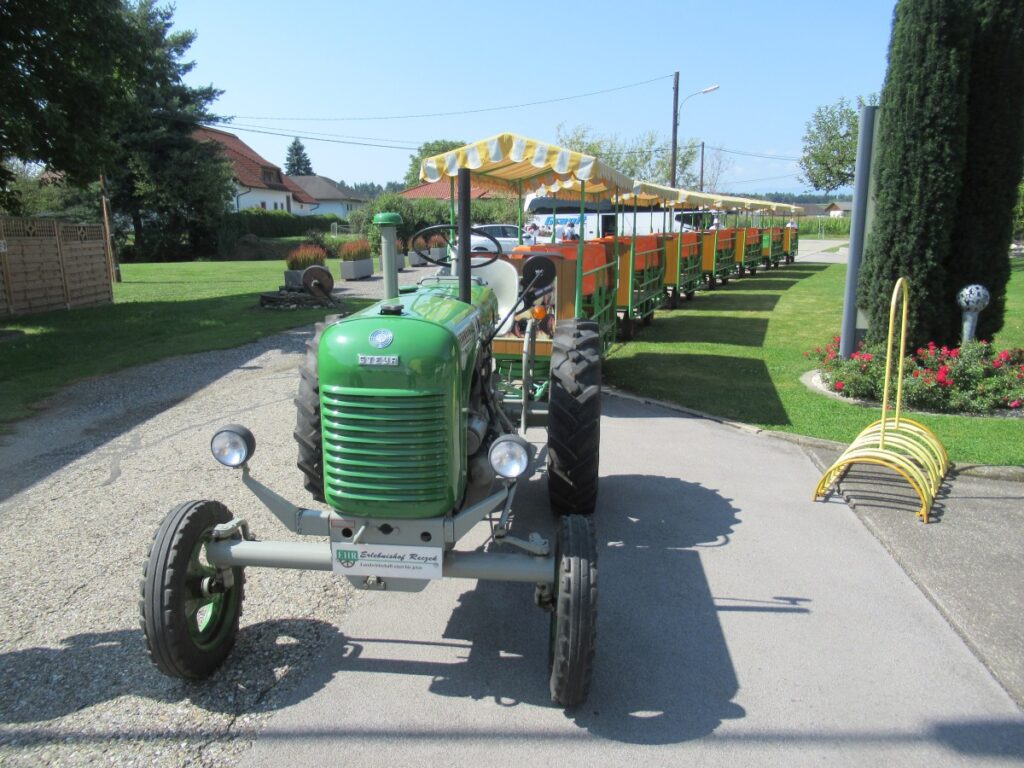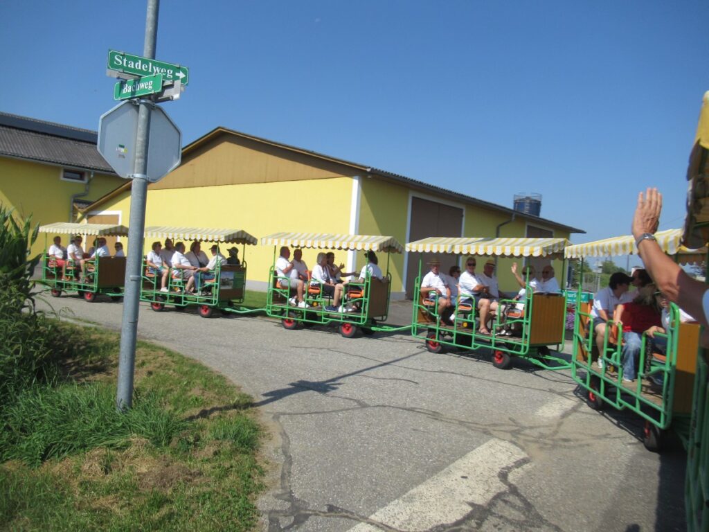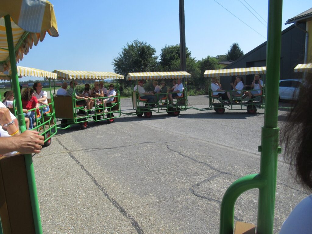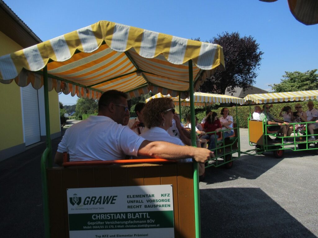 Am Freitag, 15.08., starteten wir pünktlich um 06.30 Uhr vom Hauptplatz Michelhausen. Unser erster Halt führte uns zu einem Asfinag-Parkplatz, wo wir unser Frühstück – Wurstsemmeln und Kipferl – zu uns nahmen. Danach ging es zum ERLEBNISHOF RECZEK in Wundschuh. Liebevoll werden hier unter anderem alte Landwirtschaftsmaschinen, Traktoren und Erntebehelfe ausgestellt. Mit dem Erlebniszug ging es dann zur Ausstellung rund um die Kürbisernte, auch Kürbiskernöl und ein ausgezeichneter Kürbiskernlikör wurde verkostet.