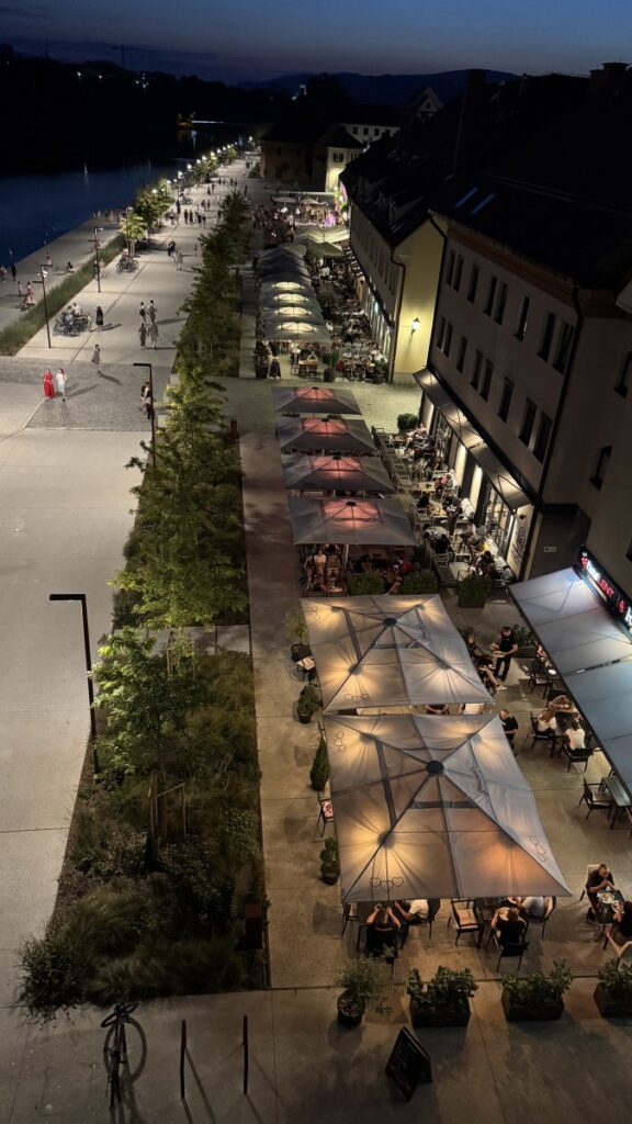 Gestärkt mit Eiskaffee oder einer Kugel Eis ging es weiter nach MARIBOR, wo wir im Hotel City unsere Zimmer bezogen. Der Rest des Abends stand zur freien Verfügung und wurde für Spaziergänge auf der Drau-Promenade oder Erkundungen der Altstadt genutzt.
