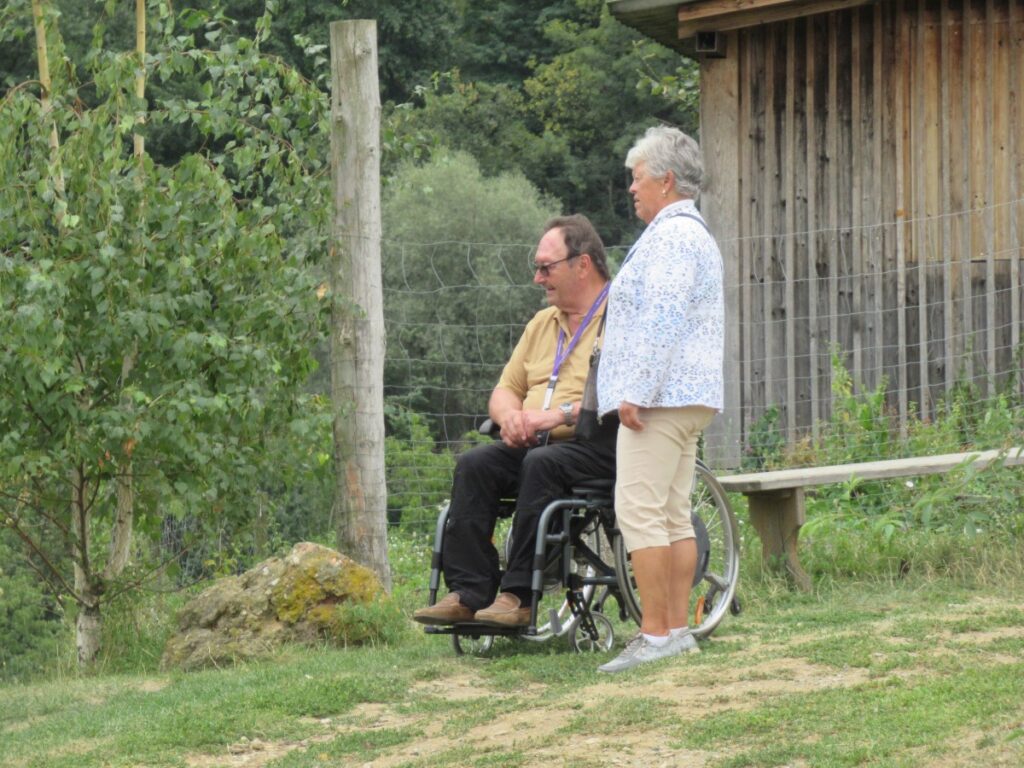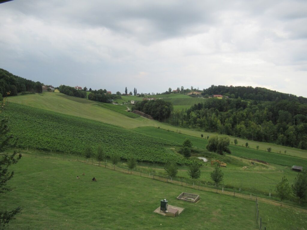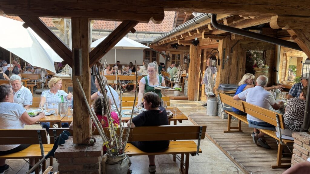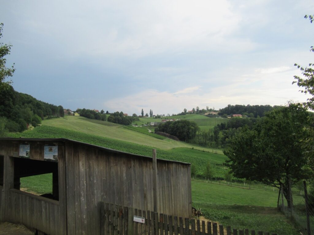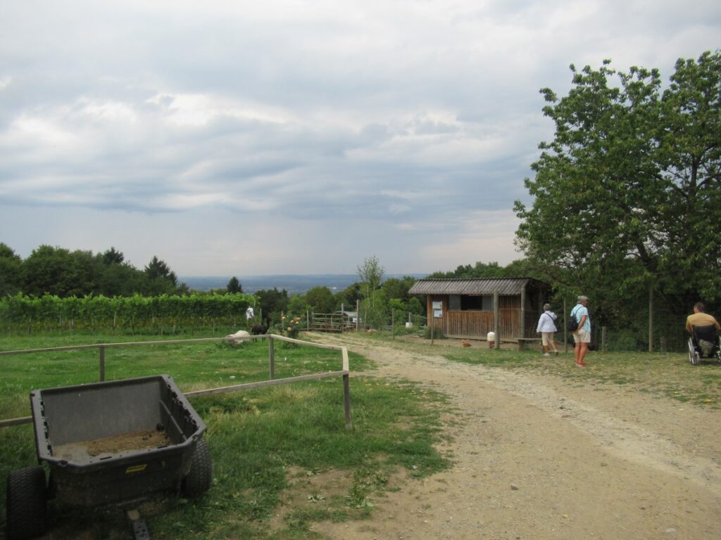 Mit einem kleinen Zwischenstopp bei einem Eisgeschäft stiegen wir dann in den Bus, um über die SÜDSTEIRISCHE WEINSTRASSE zu unserem nächsten Halt, dem BÄRENHOF BERGHAUSEN, zu gelangen. Hier finden Bären, deren Geschichte nicht immer von Freude geprägt war, ein neues Zuhause und auch andere Tiere leben hier. Bei unserem Rundgang durch die Anlage wurden mancher Reiseteilnehmer von einem Alpaka begleitet.