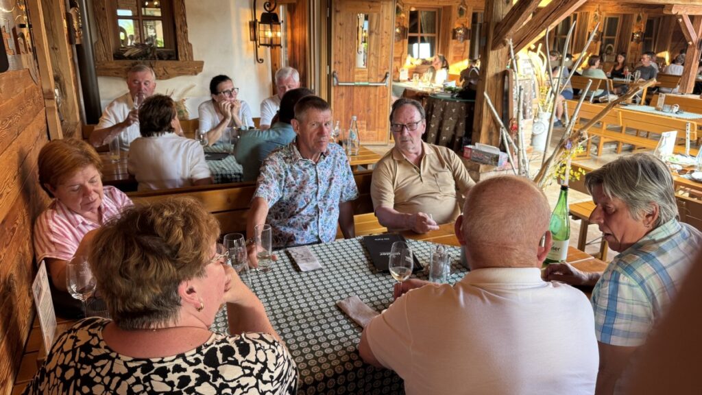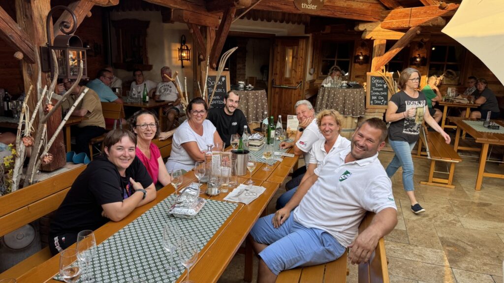 Zum Abschluss ging es noch zum HEURIGEN THALER nach Bad Waltersdorf, wo herrliche Platten und ausgezeichnete Weine auf uns warteten. Beim Bezahlen wurden wir alle sehr überrascht: von der Kellnerin wurde uns mitgeteilt, dass unser geschätzter Bürgermeister Bernhard Heinl bereits vorab mit dem Heurigen telefoniert hat und die Kosten aller Getränke übernimmt – lieber Bernhard, vielen lieben Dank dafür!
