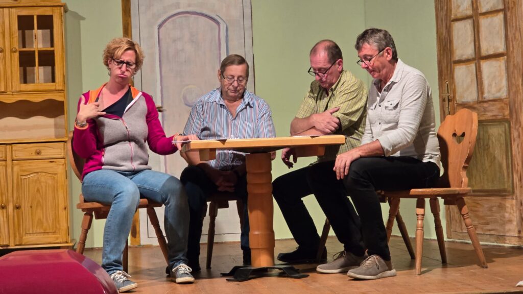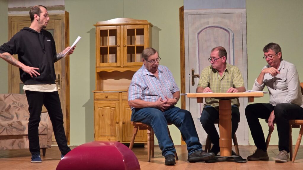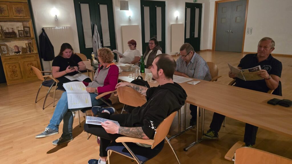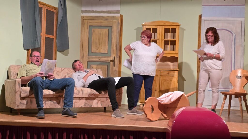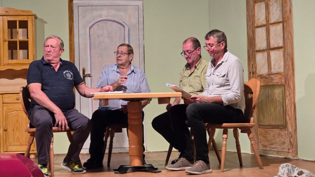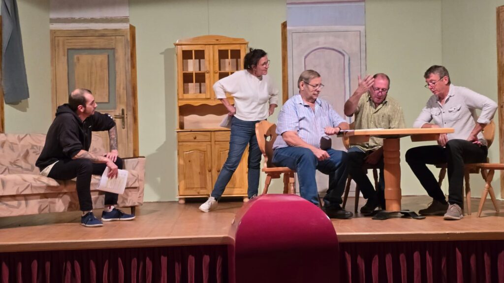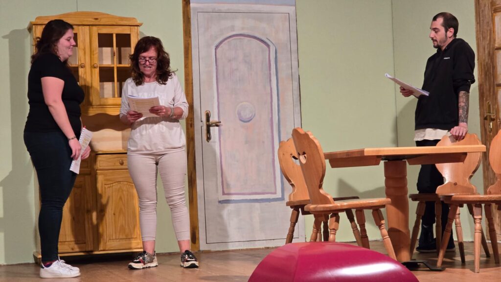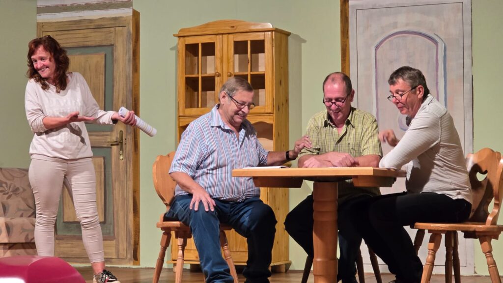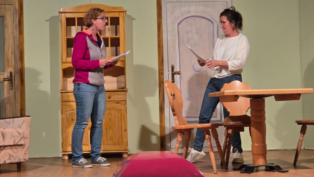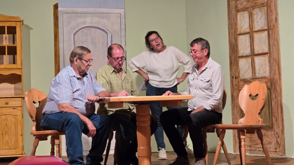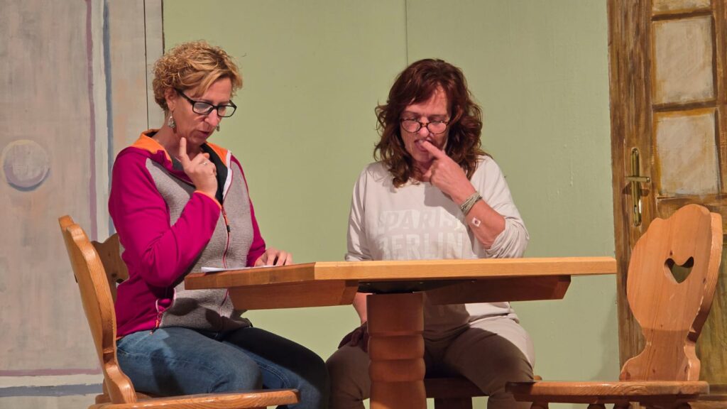 Nachdem am Freitag, 19.09., in kleiner Runde die Bühne aufgestellt wurde, konnten wir am 23.09. mit den Bühnenproben starten. Leicht überfordert durch die neue Situation, die unterschiedlichen Türen, das noch fehlende Equipment und dem Buch in der Hand hatten wir dennoch eine tolle Probe, die uns wieder gezeigt hat, dass unser neues Stück sehr turbulent wird! Um nicht zuviel zu verraten, sind die Fotos nicht chronologisch sortiert 😉 Wir freuen uns auf euren Besuch!