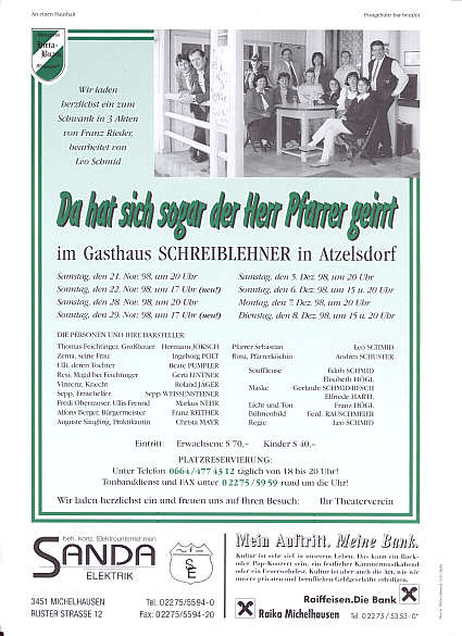 10 Aufführungen vom 21.11.1998 bis 8.12.1998 im Gasthaus Schreiblehner in Atzelsdorf.