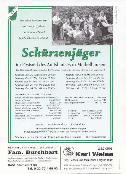 10 Aufführungen vom 20.11.2004 bis 8.12.2004 im Festsaal des Amtshauses in Michelhausen.