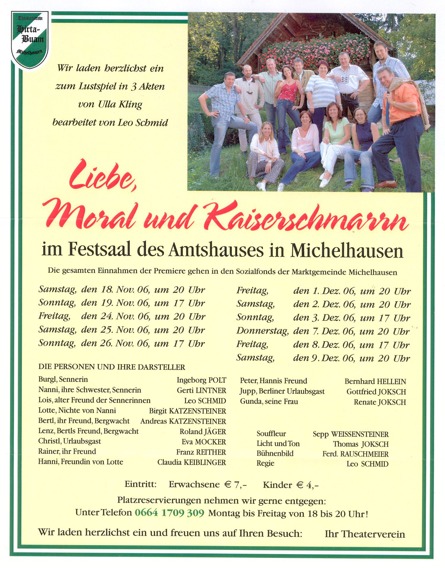 Ohne den weithin bekannten Kaiserschmarrn und den gerade zu einladenden Heustadel, der von der Dorfjugend regelmäßig heimlich „zweckentfremdet“ wird, wäre das, hoch oben in den Bergen liegende Familienidyll der Schwestern Burgl und Nanni nicht so leicht zu ertragen. Die Schwestern, beide in der Jugend schwer von der Männerwelt enttäuscht, sind sich nur in einem Punkt einig: Sitte und Moral muss verteidigt werden. Nanni weigert sich sogar strikt, einen Mann auf ihrer Alm übernachten zu lassen. An einem schönen Sommertag bricht nun dieses „Idyll“ der beiden jäh zusammen. Der Herzensbrecher von damals taucht wieder auf und bringt die verdrängten Gefühle der Schwestern zum Kochen. Munter mischt auch ein verunglückter Preuße mit, der mit allen Mitteln verhindern will, dass man seine Frau zu ihm auf diese Alm bringt.