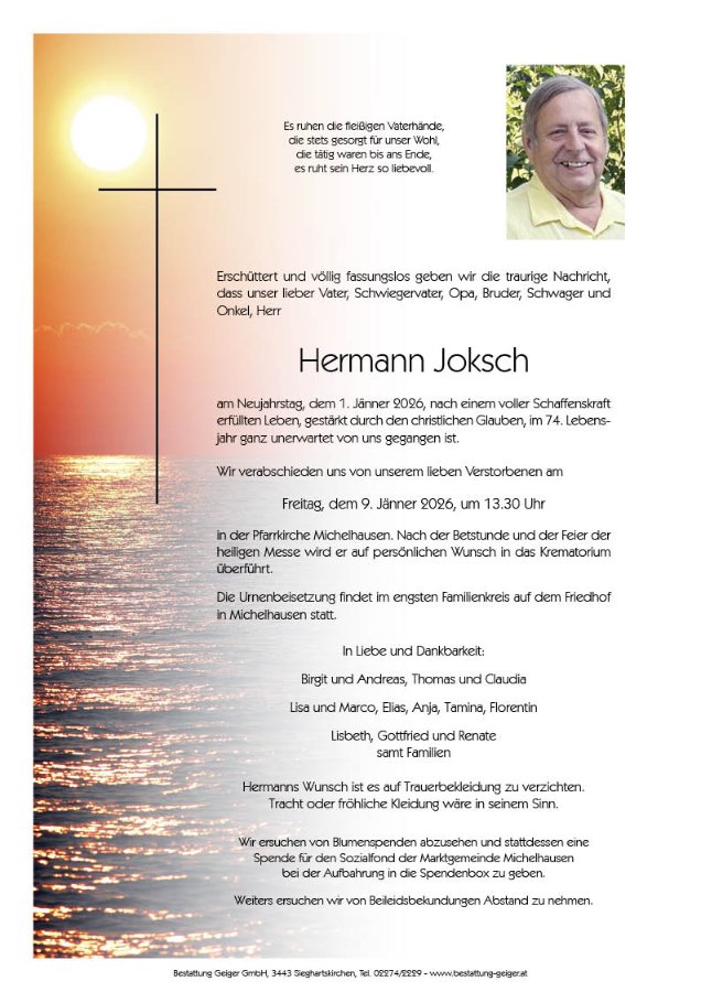 Obwohl Hermann zuversichtlich ins neue Jahr blickte, war sein Herz durch den Tod seiner geliebten Renate offensichtlich so sehr gebrochen, dass es am 1.1.2026 aufgehört hat zu schlagen.