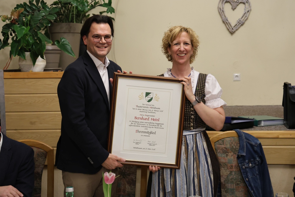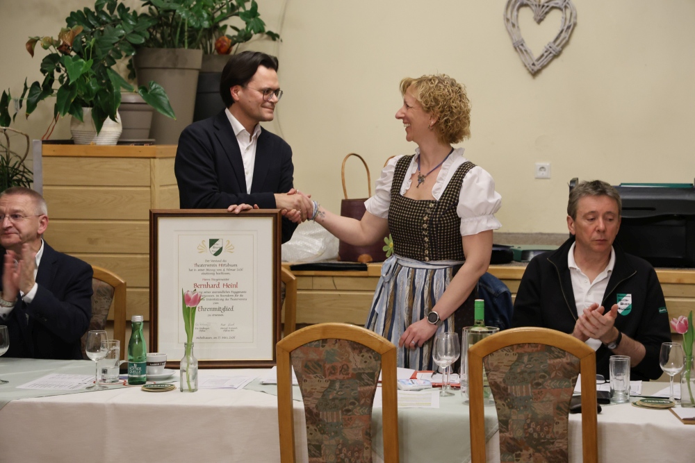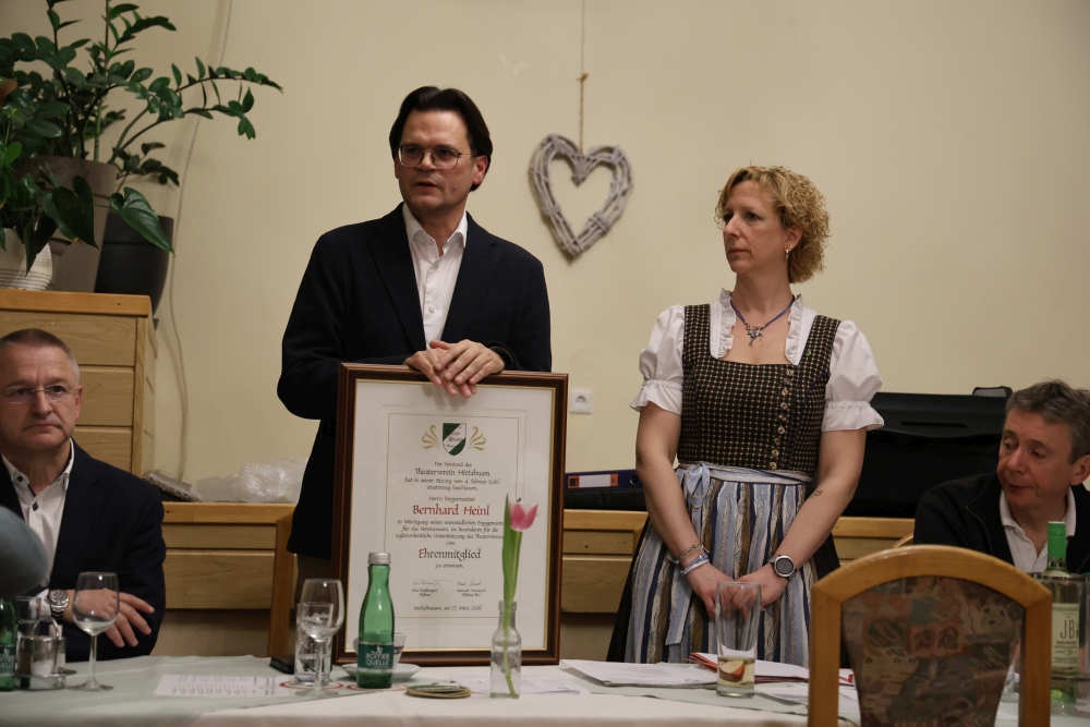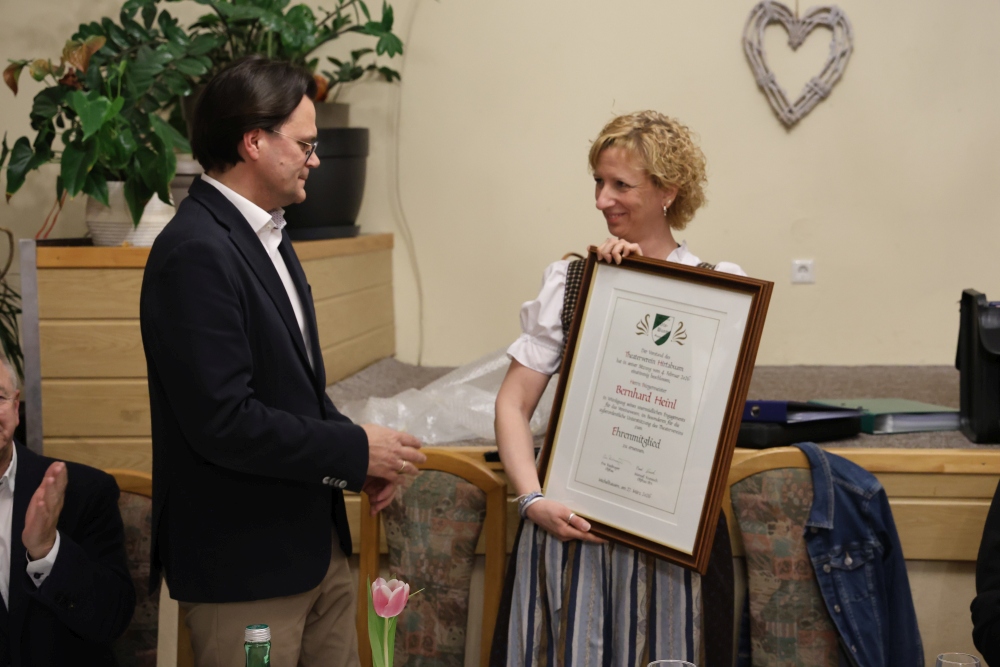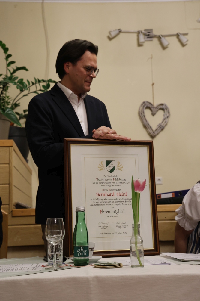 Zum Schluss der Generalversammlung wurde unserem Bürgermeister, in Würdigung seines unermüdlichen Engagements für das Vereinswesen, im Besonderen für seine außerordentliche Unterstützung des Theatervereins, die Ehrenmitgliedschaft verliehen.